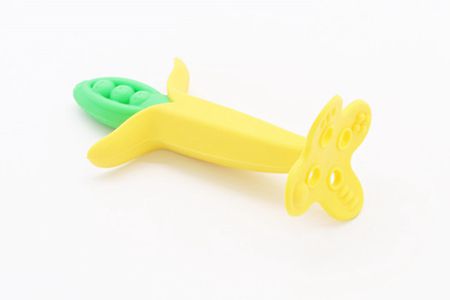 這款搖鈴硅膠牙膠的特別之處就在于它同時還是搖鈴,里面的珠子在擺動時會發(fā)出清脆聲音,小孩子會很喜歡。牙膠上部分是水果形狀,有沒有吃水果的感覺呢?
